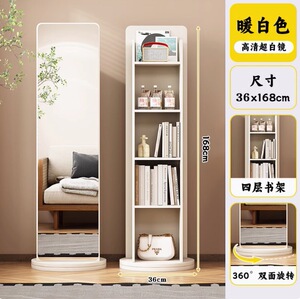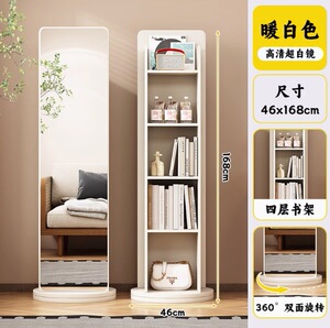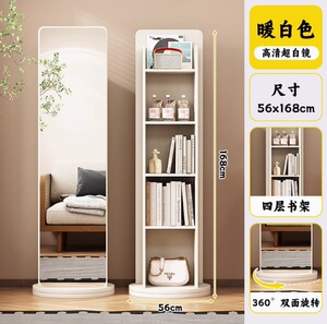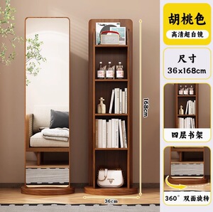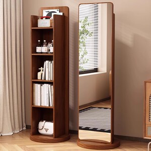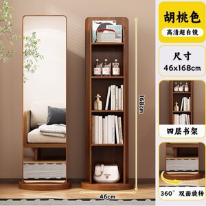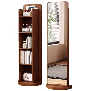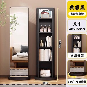 复古旋转穿衣镜全身落地镜家用卧室客厅多功能书架储物一体试衣镜