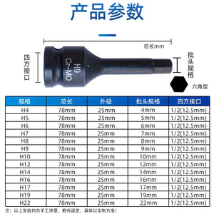 风炮内六角1/2大飞气动套筒批头电动扳手专用旋具套筒头套装压批