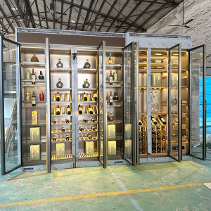 厂家供应恒温玻璃酒柜定制 北欧风洋酒展示架地下酒窖存酒货架柜