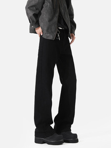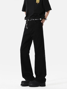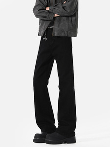 cleanfit春秋季弹力黑色弯刀微喇牛仔裤男士vibe美式修身直筒裤子