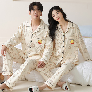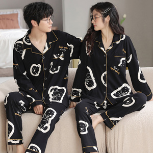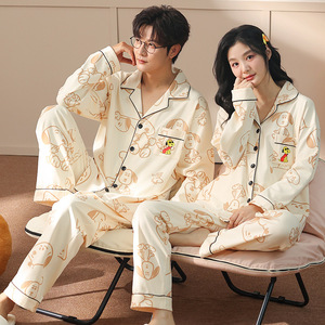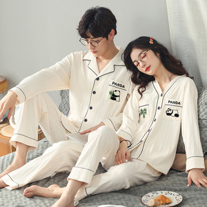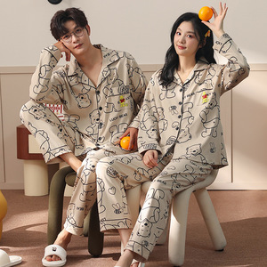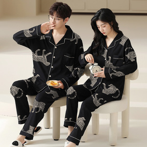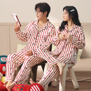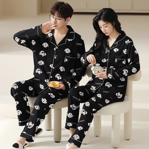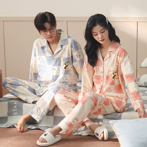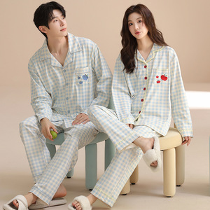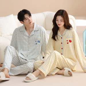 情侣睡衣春秋款纯棉长袖格子高档开衫家居服男女士套装2025年新款