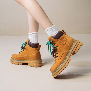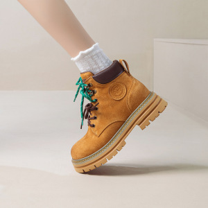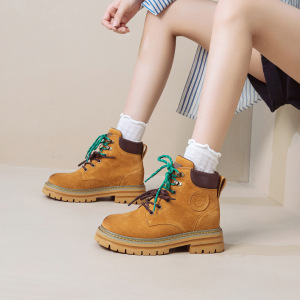 真皮内增高马丁靴女2025夏季新款户外旅游短靴复古登山西部牛仔靴