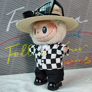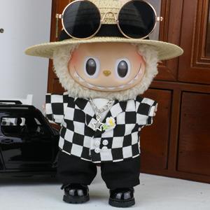 [仅衣服]Labubu一/三代衣服17cm拉布布娃衣玩偶公仔棋牌格子西装