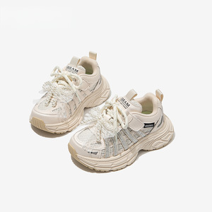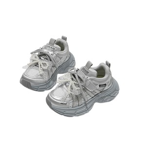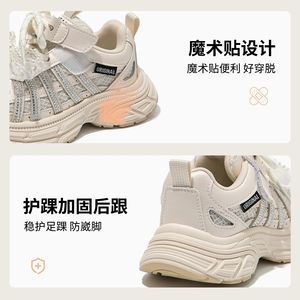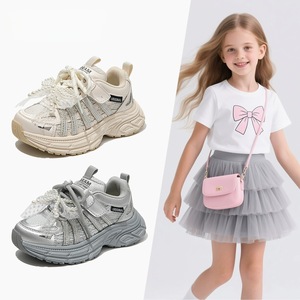 女童鞋子儿童运动网鞋2025秋季新款网面透气大童珍珠蝴蝶结老爹鞋