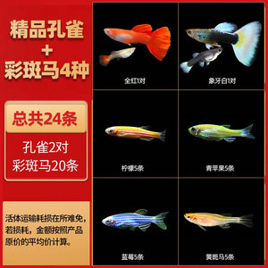 孔雀4对+6色斑马30条+金苔鼠2条 共40条
