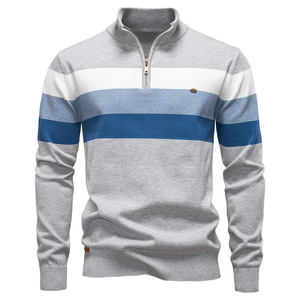 欧美跨境秋冬新款男装开胸立领男士毛衣套头针织衫毛衫男卡其