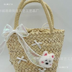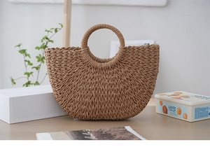 原创diy伴手礼手工海边度假字母草编包手提单肩纸绳女包草编包小