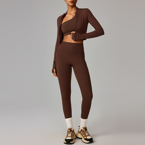 长袖+文胸+长裤 焦茶咖