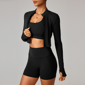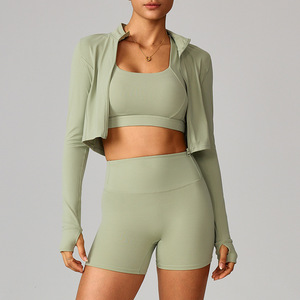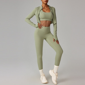 跨境云感户外运动紧身瑜伽服套装裸感健身服防震高腰瑜伽服三件套