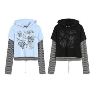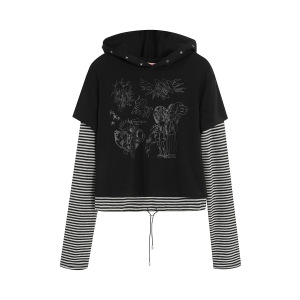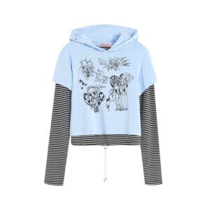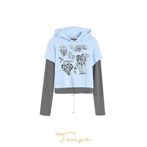 Mint Miaow 25秋季新品甜美少女条纹拼接假两件长袖T恤