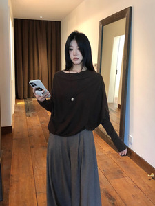 FOX ROOM 气质蝙蝠袖针织衫2025秋季新款宽松通勤羊毛上衣女Y110