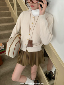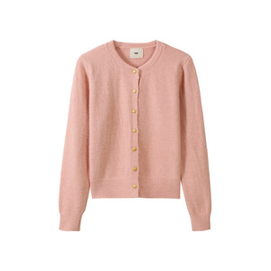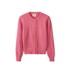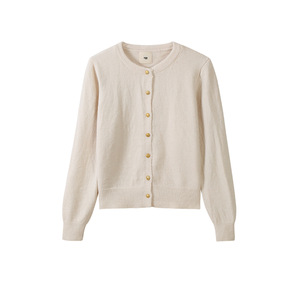 针织开衫女2025秋冬新款高级感小金扣圆领毛衣外套秋冬外穿开衫