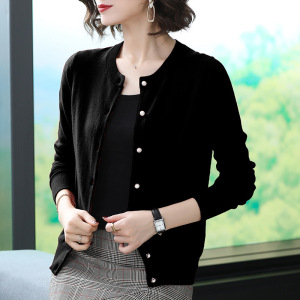羊绒女外套羊毛针织开衫春秋新薄短款宽松毛衣圆领