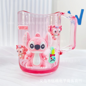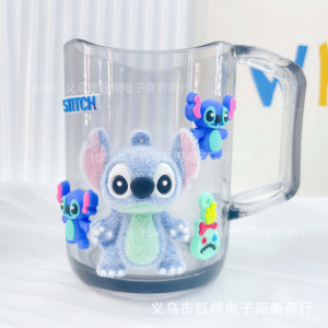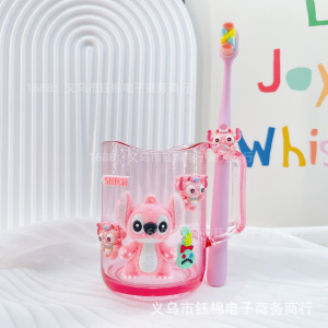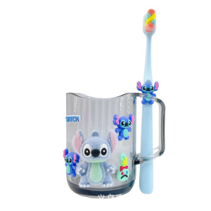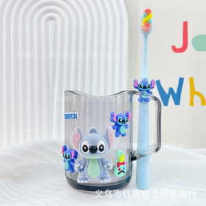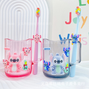 儿童牙刷牙杯套装植毛史迪仔卡通6-12岁牙刷加厚家用漱口杯批发