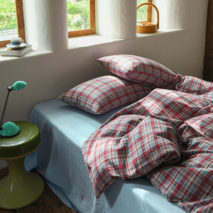 日系民宿风全棉色织双层纱四件套亲肤透气四季款纯棉床品被套床单
