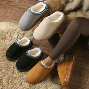 秋冬毛毛拖鞋男女情侣新款居家纯色外穿防滑保暖拖鞋