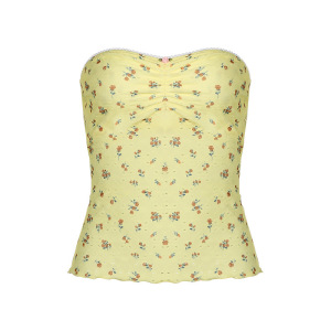 2025 アメリカの女の子の小花柄中空プリーツ多用途チューブトップ甘いファッション薄い夏さわやかなベスト女性のための