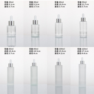 透明フラットショルダーエッセンシャルオイルボトル、フロストボトル、透明ガラスエッセンスボトル、卸売化粧品ボトル、詰め替えボトル