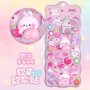 3D软萌屁屁捏捏立体贴纸动物可爱兔子小熊儿童手工装饰手机壳贴画