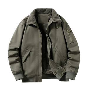男装冬季保暧高档男士时尚加绒飞行员夹克外套工装棉服外穿棉衣