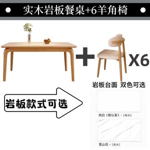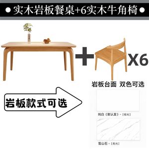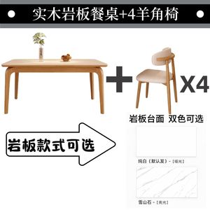 实木岩板餐桌+4硬座牛角椅【十年质保】