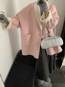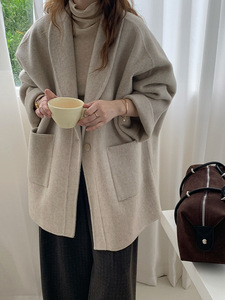 2025秋冬新款翻领双面羊绒大衣女中长款韩系宽松阔版羊毛呢外套女
