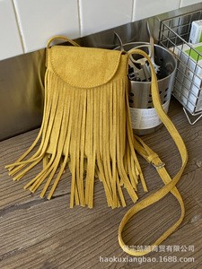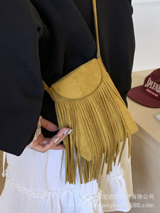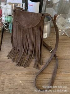 高级感复古包包女式2025新款时尚百搭单肩包麂皮绒流苏斜挎水桶包