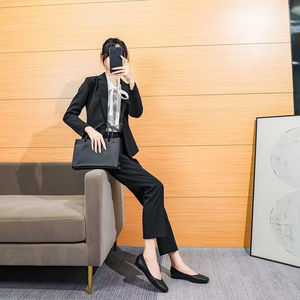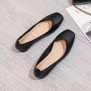 真软皮工作鞋黑色方头平底工装职业上班皮鞋面试空姐舒适软底单鞋