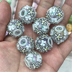 跨境重工双彩五叶花点钻花球串珠diy串珠笔手机链钥匙扣车挂等配