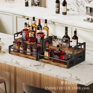 跨境木质桌面收纳架阶梯式咖啡糖浆置物架抽拉隐藏式双层置物架