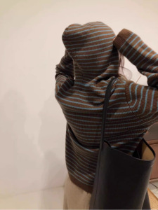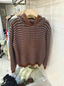 条纹连帽毛衣外套女秋冬宽松慵懒针织卫衣设计感韩系小众短款上衣