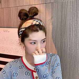 韩版经典复古宽边格纹海绵头箍秋冬外出千鸟格发箍小清新发饰女