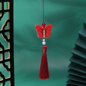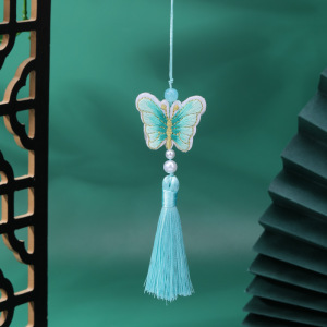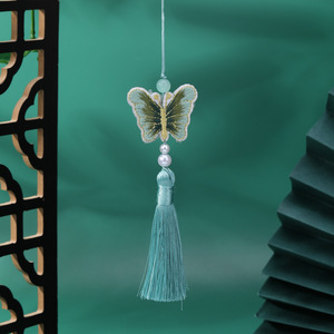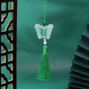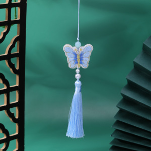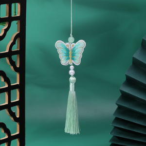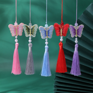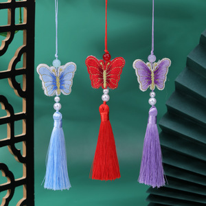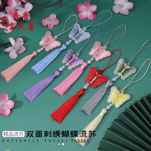 8cm双面刺绣蝴蝶流苏饰品挂饰diy厂家批手工饰品挂饰子挂件汉服