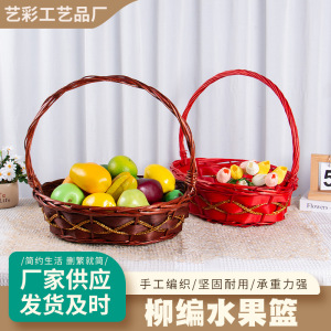 水果篮花篮礼品篮柳编手提水果篮花篮送礼鸡蛋篮果篮插花篮厂家