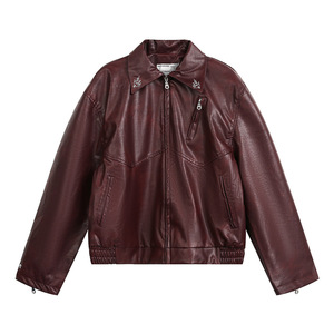 创意图案刺绣PU皮夹克男式春秋款宽松美式街头翻领拉链皮衣外套