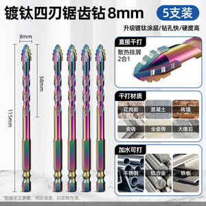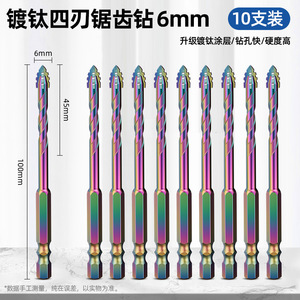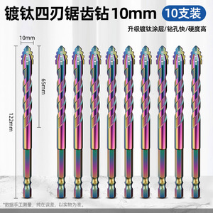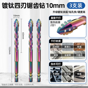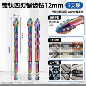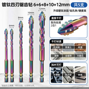 蓝胜镀钛锯齿偏心钻头瓷砖混凝土打孔专用升级四刃干打霸王钻超硬