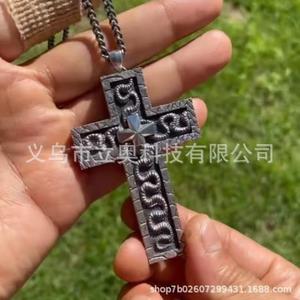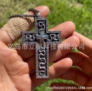 跨境新品复古可打开双层十字架蛇形项链欧美创意时尚节日礼物吊坠