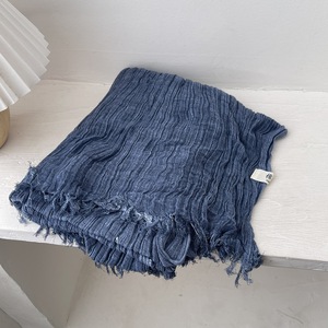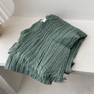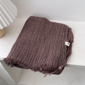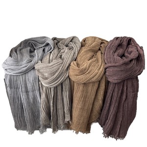 清冷感日系复古文艺纯色褶皱棉麻披肩春秋质感纯棉围巾女护颈围脖
