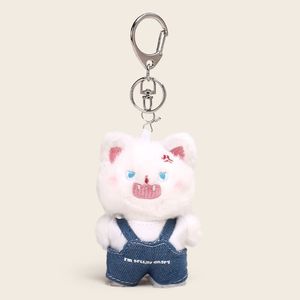 正版炸毛小宠猫咪牛仔背带裤情侣对对毛绒挂件精致书包钥匙扣公仔