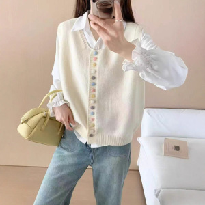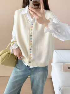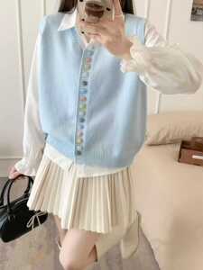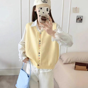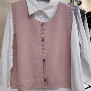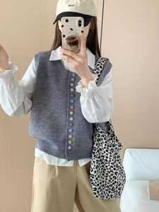 针织马甲开衫女2025春秋新无袖坎肩宽松外搭彩色扣子开衫马夹外套