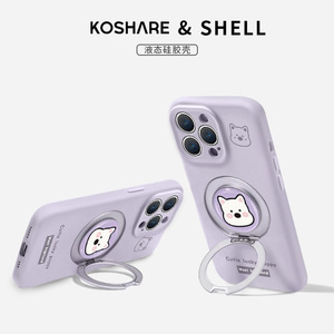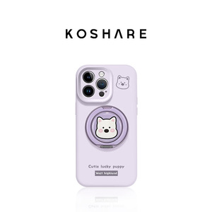 Apple 16promax 携帯電話ケース 13 液体シリコーン 15 かわいい落下防止 14 肌に優しいに適した子犬磁気ホルダー
