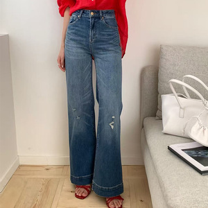 抖音代发复古做旧直筒牛仔裤女高腰美式辣妹宽松显瘦拖地微喇叭裤