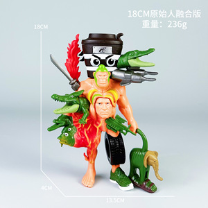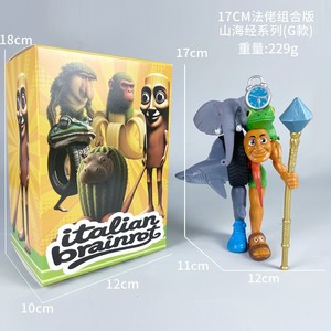 跨境融合体木棍人山海经恶搞外国山海经手办穿鞋鲨鱼公仔模型摆件