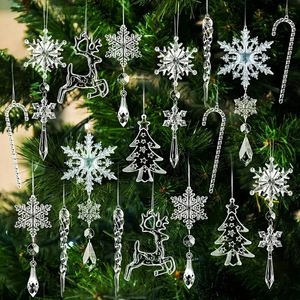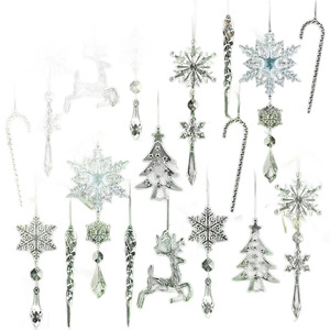 跨境18件套小鹿权杖款圣诞节装饰品雪花装饰冰柱冰锥吊坠挂件