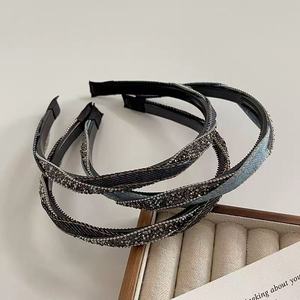韩国复古简约牛仔系水晶缠绕头箍气质小众设计布艺网红压发发箍女