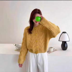 今年人気の優しいスタイルのツイスト長袖セータージャケット春の新作優しく柔らかいワックス状ニットトップ婦人服