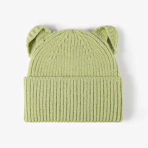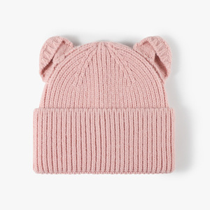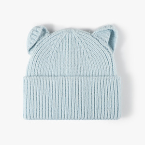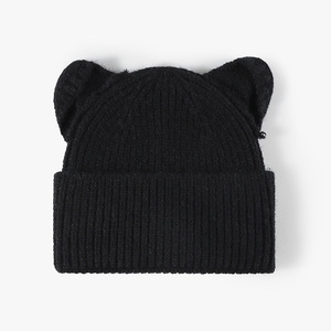 猫耳朵光板可爱加厚仿兔毛秋冬针织帽户外无檐女士护耳毛线帽批发