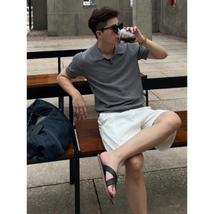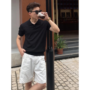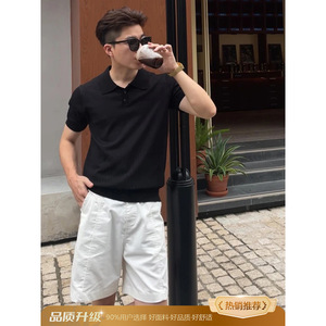 老钱风穿搭针织短袖polo衫男士夏季重磅翻领正肩t恤美式复古半袖