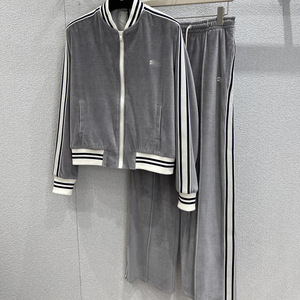 丝绒休闲套装 织带拼接长袖棒球风外套+松紧腰直筒长裤秋 ZT62689