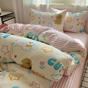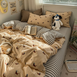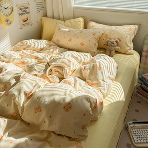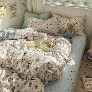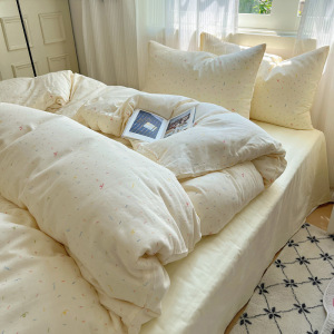 A类母婴级纯水洗棉四件套ins小清新床单被套床笠款学生宿舍三件套